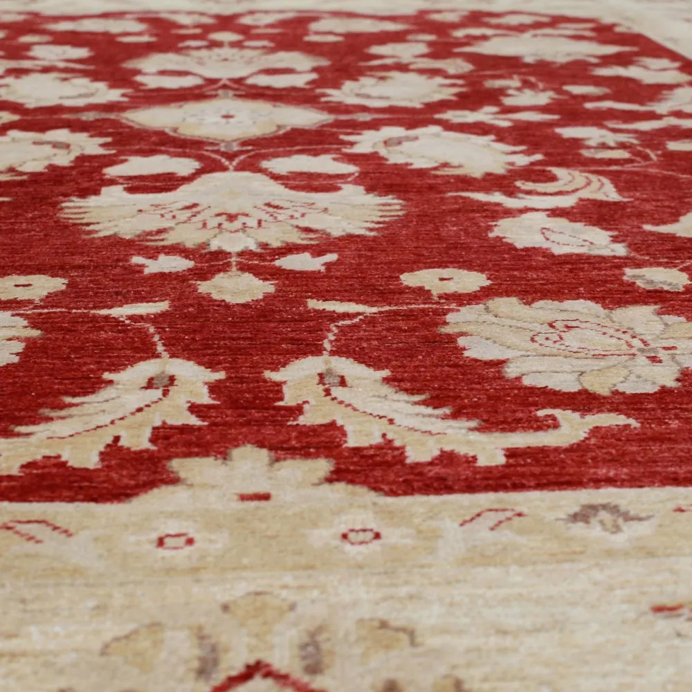 Covorul Ziegler este foarte popular, culorile sale fiind realizate din diverși arbori. După ce covorul Ziegler este terminat, este spălat de patru ori și uscat la soare. Desenele lor se bazează pe covoare antice și sunt adesea de culoare deschisă. Sunt un covor persan foarte căutat, în principal pentru că sunt excelente pentru majoritatea locuințelor, fie că au un decor minimalist sau clasic. Partea cu noduri a covorului Ziegler este 100% lână Ghazni. Sunt ușor de manevrat și nu scamează. Mulți oameni cred că, cu cât covorul persan este mai gros, cu atât este mai bun și mai durabil. Durabilitatea depinde de tehnica de înnodare și de calitatea materialului folosit. De cele mai multe ori, covorul cu fibre lungi este mai puțin durabil, deoarece aspiratorul aspiră cu ușurință fibrele de nod. Conferă eleganță fie ca un covor de living, fie ca un covor de dormitor. Ca un covor durabil, poate fi așezat și sub o masă de luat masa. De asemenea, avem în stoc mai multe lungimi de covoare traverse Ziegler.